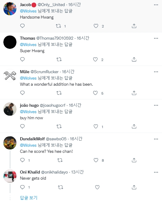 구단 SNS를 통한 소식에 울브스 팬들은 완전 영입을 해야한다고 주장하며 황희찬 선수에거 많은 지지를 보내고 있습니다.
