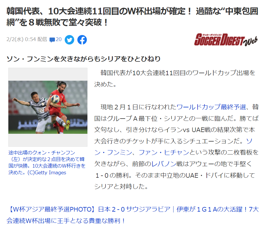 | [JP] 日 네티즌 "한국, 월드컵 10회 연속진출 확정 지었네" 일본 반응 (0) | 2022.02.02 |