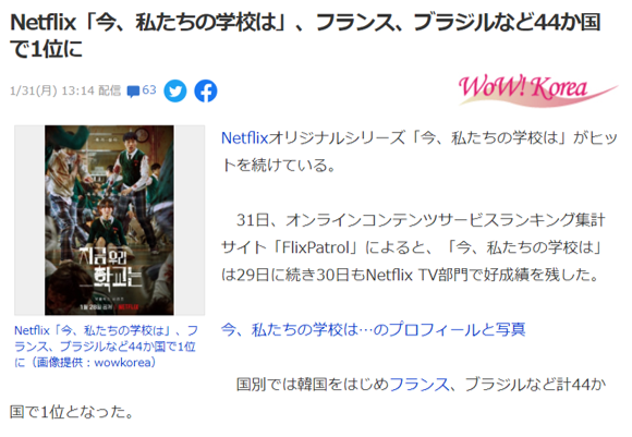 | [JP] 日 언론 "지금 우리 학교는 넷플릭스에서 벌써 1위 기록" 일본 반응 (0) | 2022.02.03 |